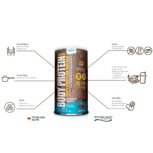 O Body Protein Cacau 600g Equaliv é uma proteína que não é feita a partir do soro do leite, foi criada pensando nas pessoas quem procura melhores resultados durante o treino, sendo um suplemento proteico à base de colágeno hidrolisado que serve para o aumento da massa muscular, auxilia na perda de gordura e no fortalecimento da musculatura corporal.