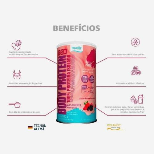 O Body Protein Red 600 g Equaliv é um suplemento proteico inovador, desenvolvido para pessoas que buscam melhores resultados durante o treino e desejam manter uma rotina alimentar equilibrada. Diferente das proteínas tradicionais, ele não é feito a partir do soro do leite, sendo formulado com colágeno hidrolisado, o que o torna ideal para quem tem intolerância à lactose ou busca um suplemento mais leve e de fácil digestão.