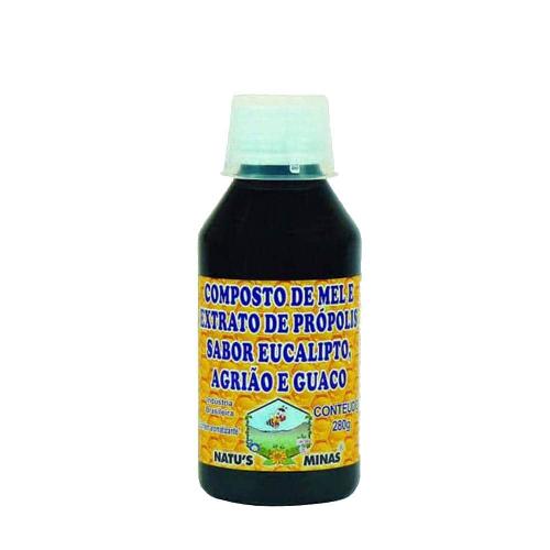 Mel, Extrato de Própolis, Eucalipto, Agrião e Guaco. Não contém glúten.