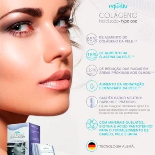 O colágeno é uma proteína já presente em nosso organismo, e é responsável por diversos resultados em nosso corpo, tanto por dentro como por fora. O Colágeno Hidrolisado 30 Sachês Equaliv possui uma melhor absorção do corpo, ou seja, o resultado é ainda mais rápido! Esse colágeno é usado no estímulo da produção natural da substância no organismo, é um colágeno mais voltado para a estética, além de melhorar a pele, ou seja, seu foco principal também é ajudar a fortalecer cabelos e unhas.