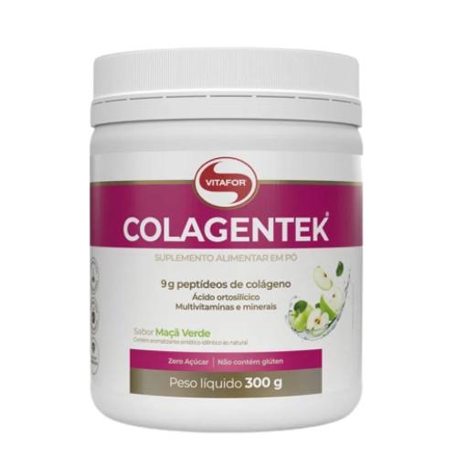O Colagentek Maçã Verde 300g Vitafor é um suplemento alimentar em pó no refrescante sabor de Maçã Verde, que combina de 9g de colágeno hidrolisado por porção, associada a vitaminas e minerais precursores de colágeno, o que promove maior absorção e efetividade no consumo. Com sua alta tecnologia, o Colagentek proporciona diversos benefícios para a saúde dos ossos e articulações.