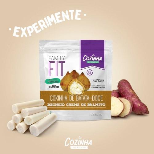 A Coxinha de Batata Doce Recheada com Creme de Palmito 420g Family Fit é uma deliciosa opção de coxinha saudável sem nenhum tipo de conservante, aditivo, corante ou aromatizante ideal para qualquer hora do dia, Diferente de qualquer outra coxinha, esta é empanada na farinha de linhaça dourada que possui o famoso ômega 3 além de ser assada. Além disso, garante 57 gramas de proteína por embalagem, além de não possuir glúten nem lactose. Com embalagens ideais para saborear em família ou dividir em várias porções além de possuir um saquinho com zíper que traz a praticidade necessária para armazenagem adequada depois de aberto.