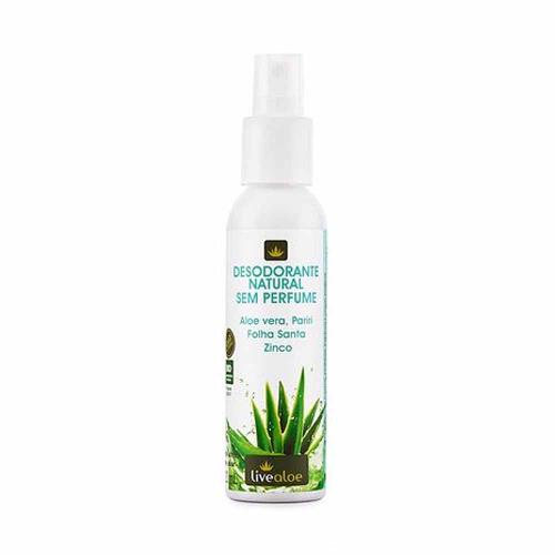 Desodorante Natural Aloe Sem Perfume 120ml Live Aloe: Desodorante Natural e Vegano, controlador de odor e rico em ingredientes com ação antisséptica. Sobre a marca: A Live Aloe foi concebida para produzir cuidadosamente e comercializar fitocosméticos. As formulações contém alta concentração de gel de Aloe Vera associado com plantas medicinais, que propiciam benefícios à pele e ao cabelo. Os produtos respeitam a natureza e são sustentáveis, propondo ao consumidor uma concepção mais ampla da beleza, como hábito de cuidar de si mesmo, ou seja, resgatando o auto-cuidado. É a comunhão entre saúde, beleza e meio ambiente!