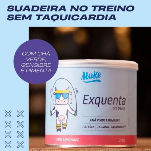 O Exquenta Muke Pré Treino Pink Lemonade 300g +Mu é o famoso pré-treino da Mais Mu. Este pré treino da Mais Mu está inserido dentro dos produtos focados em performance da marca e contém ingredientes selecionados carinhosamente para te ajudar a dar aquela acelerada maneira no metabolismo, tirar a sensação de fadiga e sem taquicardia. Ou seja, ele é super gostoso e tá prontinho pra fazer seu treino render mais!