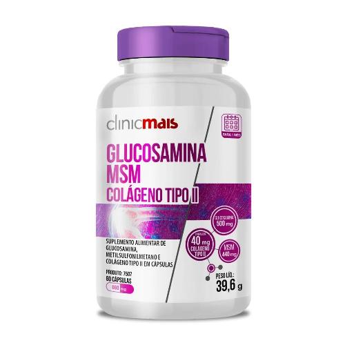 A combinação de Glucosamina + MSM + Colágeno Tipo II 60 Cáp. ClinicMais é frequentemente utilizada como suplemento para promover a saúde das articulações. Onde cada um desses componentes desempenha um papel específico voltado para sua saúde.