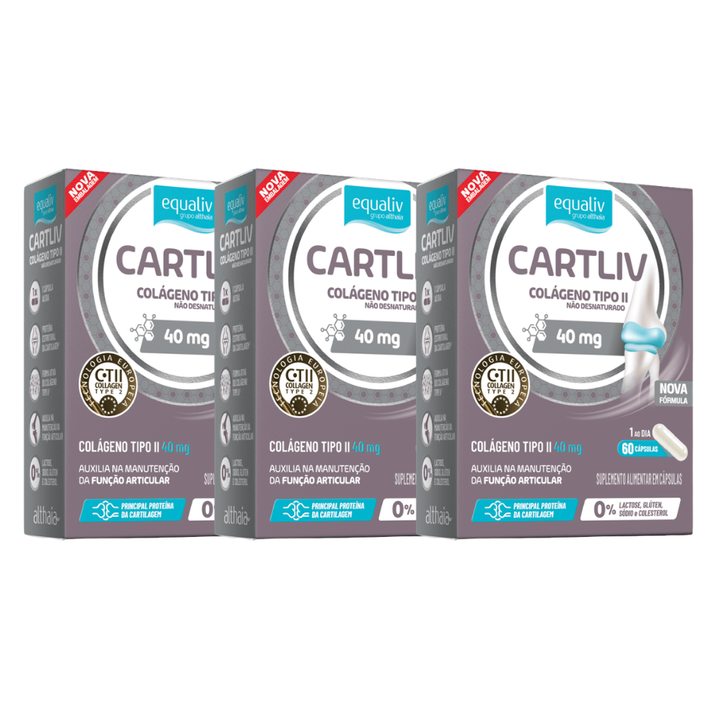 O Cartliv Colágeno Tipo 2 60 cápsulas Equaliv é um Colágeno Tipo 2 que atua diretamente nas articulações, amenizando dores e melhorando a mobilidade, este tipo de colágeno é ideal para combater doenças articulares auto imunes, inflamação de articulações, lesões em cartilagens e artrite reumatoide. Internamente, ele pode fortalecer e manter as células dos tecidos unidas. Já externamente, pode ajudar na cicatrização e regeneração de cortes, também na elasticidade da pele e fortalecimento das unhas.