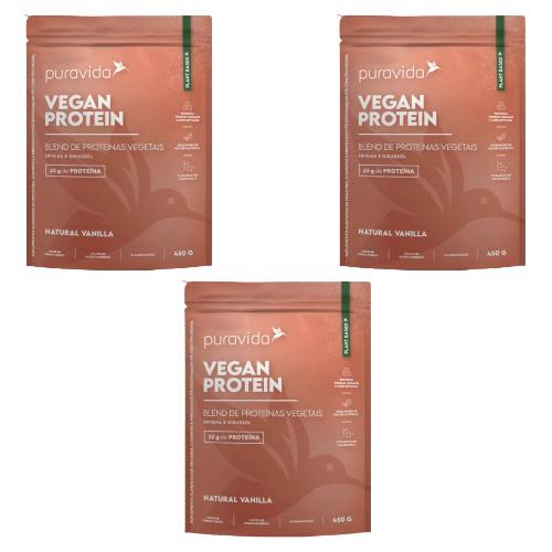 Kit 3 Vegan Protein Natural Vanilla 450G Puravida