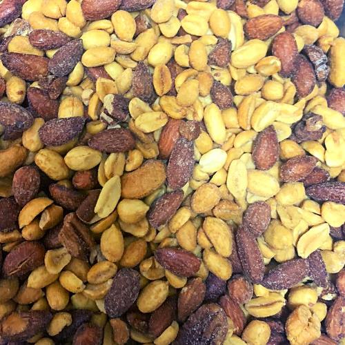 Amendoim s/ pele torrado, amêndoa torrada, castanha de caju, nozes pecan, açúcar, óleo de soja e sal.
