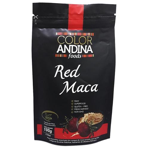 Red Maca em Pó 100g Color Andina: A maca é muito conhecida por ser um tubérculo nativo da região dos Andes, que tem como principal característica o poder de aumentar a libido e a fertilidade. Sobre a marca: A Color Andina Food é uma empresa que tem diversos alimentos naturais, saudáveis, funcionais e exóticos. A inciativa surgiu da convivência com as diversas culturas de países Andinos (Chiles, Peru, Bolívia), a partir da cultura da culinária e dos produtores de alimentos orgânicos, agroecológicos, sem glúten, sem agrotóxicos, ou seja, o mais natural possível.