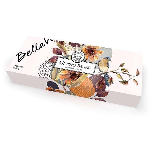Caixa de sabonetes em barra Giorno Bagno. Sobre a empresa: A Giorno Bagno é uma das linhas da Giorno, faz parte de uma linha de sabonetes em barra de grande sucesso que tem um amplo mix de fragrâncias. Perfeita para usar, ter em casa aromatizando o ambiente ou presentear alguém. A marca Giorno cria um universo que nos lembra da riqueza dos detalhes, da leveza, das delicadezas da vida e das coisas que realmente importam. A linha Giorno Casa é super completa, trás perfumes de alta qualidade para casas, empresas, restaurantes e a Giorno Uomo é uma linha masculina e sofisticada que trás perfumes exóticos e modernos.