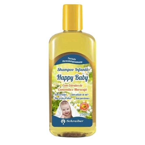 Shampoo Infantil Happy Baby 250ml Schraiber: Shampoo infantil para limpeza delicada dos cabelos da criança. com extrato de camomila e maracujá. A Schraiber nasceu de dois farmacêuticos homeopatas que se uniram para desenvolver um projeto que tinha como principal objetivo atender as necessidades das farmácias de homeopatia com produtos mais naturais e de extrema qualidade. É popularmente conhecida pelo controle na origem de matérias-primas e pela preocupação nas ações de proteção ao meio ambiente. Sendo assim, quase todos os produtos não são testados em animais, as embalagens são 100% recicláveis e eles atendem todos os padrões de normas técnicas exigidos.