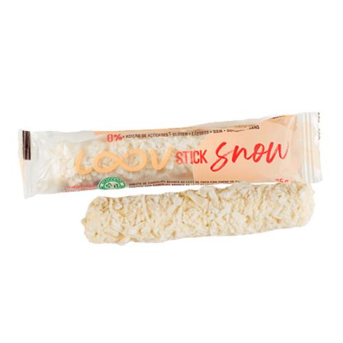 O que é o Tablete Stick Loov Snow sabor Chocolate Branco e Coco?