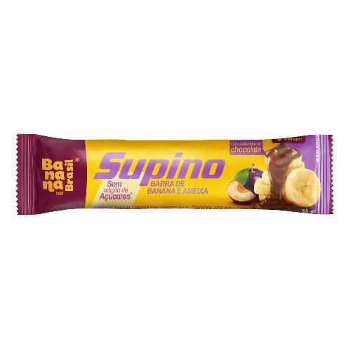 Barrinha de banana com ameixa desidratada e cobertura de chocolate ao leite, ótima para servir como um snack prático de baixa caloria e zero açúcar. Sobre a marca: A Banana Brasil surgiu no ano de 1985 em Schroeder, Santa Catarina. Viajantes e desbravadores do mundo voltaram para sua cidade natal trazendo os ensinamentos que a estrada os mostrou, que a alimentação saudável sempre será o melhor caminho compartilhando saúde, energia e alegria. A linha Supino carrega o verdadeiro sabor dos ingredientes cuidadosamente selecionados.