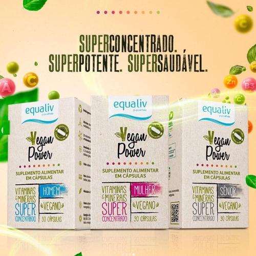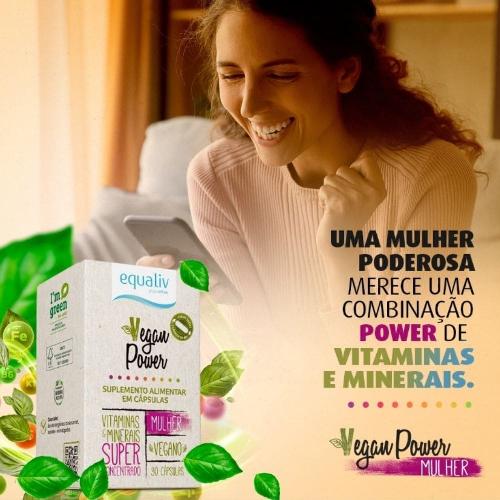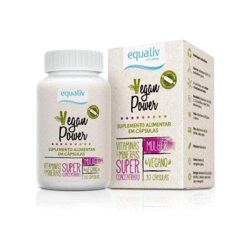 O Vegan Power Mulher 30 Cápsulas Equaliv é um suplemento alimentar em cápsulas concentrado com vitaminas e minerais, na sua formula super completa, nela é encontrada o picolnato de cromo, que tem como benefício diminuir a absorção de gordura e aumentar o ganho de massa muscular, é super saudável por ser livre de alergênicos, conservantes, corantes e quaisquer aromatizantes o Power Vegan Mulher tem uma formulação limpa, e pode ser consumido também por pessoas veganas.